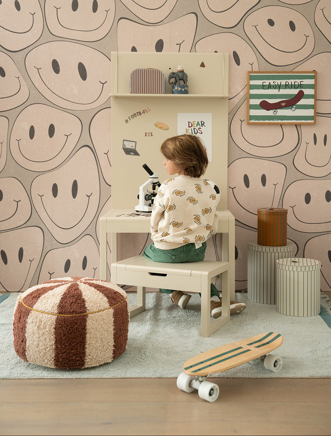 Wir glauben, dass dies ein Kinderschreibtisch muss nicht nur den Wünschen Ihres Kindes entsprechen, sondern kann auch zu Ihrem Einrichtungsstil passen. Deshalb sagen wir: Style with a Smile. Unser gesamtes Kinderzimmersortiment, angefangen bei der Kinderschreibtisch, die magnetische Rückwand, den Hocker mit Stauraum Und alle Themen und Accessoires sind so gestaltet, dass Sie sie nach Ihren Wünschen gestalten und in jedem Raum glänzen lassen können.